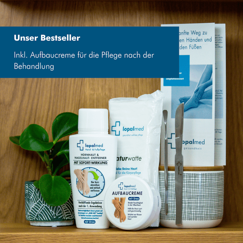 Mit der Lopalmed Hornhaut & Nagelhaut-Entfernungslotion haben Sie die Möglichkeit, Hornhaut und Nagelhaut ohne Bimsstein, Raspel, Hornhauthobel oder Nagelhautschere schonend und völlig verletzungsfrei zu entfernen.