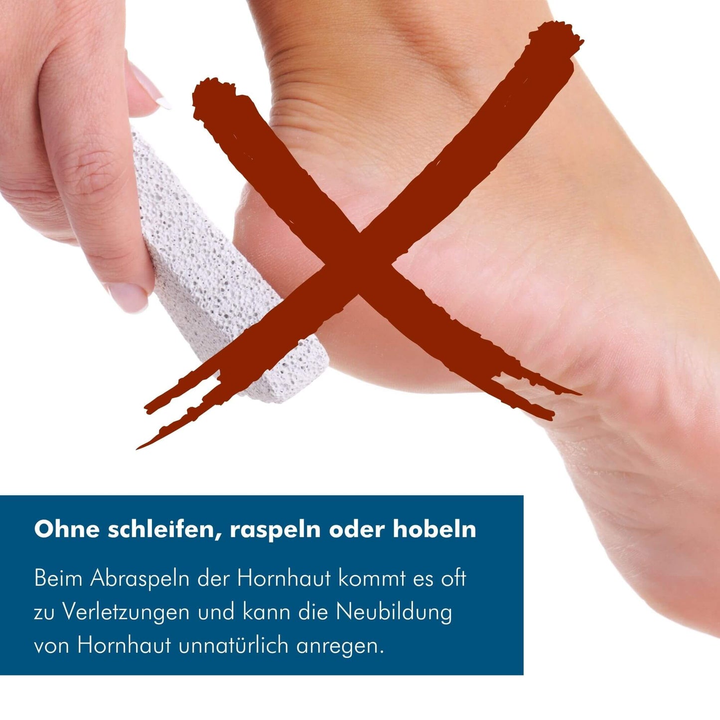 Der Vorteil: die gesunde Haut wird so nicht beansprucht oder gar verletzt (besonders für Diabetiker geeignet) und somit der unnatürlichen Hornhautneubildung entgegengewirkt.