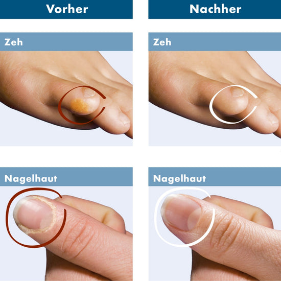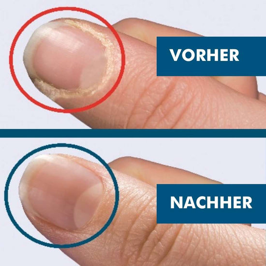Auch bei der Nagelhaut ist es das gleiche Spiel: Wer sie schneidet oder zurückschiebt, regt das Wachstum nur weiter an. Auch hier hilft unsere Lotion, dieses Problem zu lösen – sanft und dauerhaft.