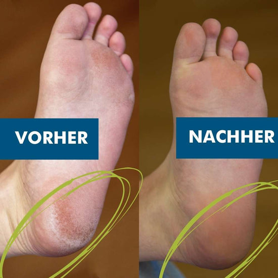 Die speziell entwickelte Lotion weicht die Hornhaut binnen weniger Minuten auf, sodass sie wie Butter sanft abgeschabt werden kann.