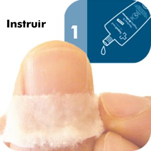 Las áreas a eliminar se suavizan con la loción y se eliminan con un Espátula de callos romo o un empujador de cutículas como gelatina.
