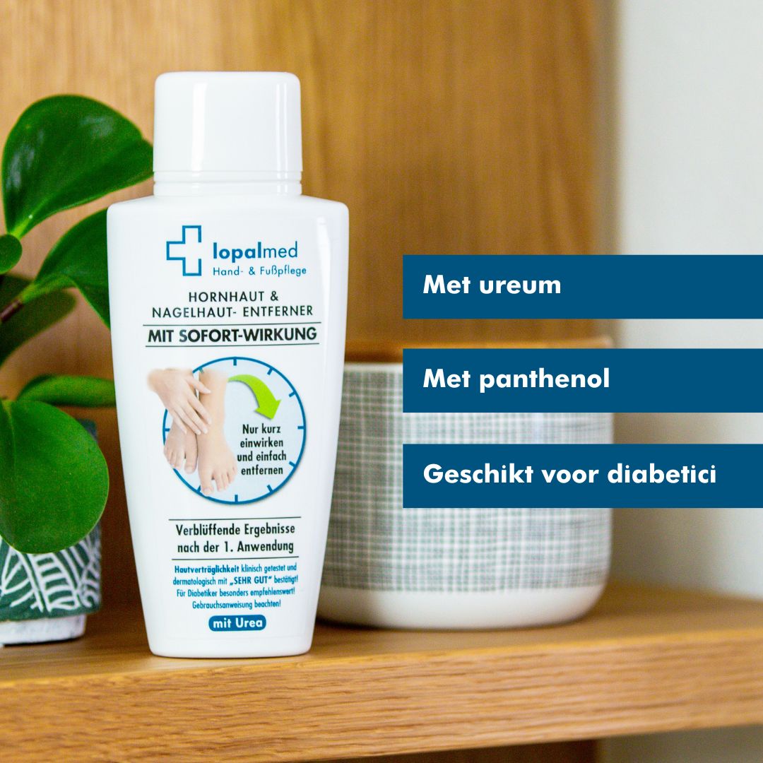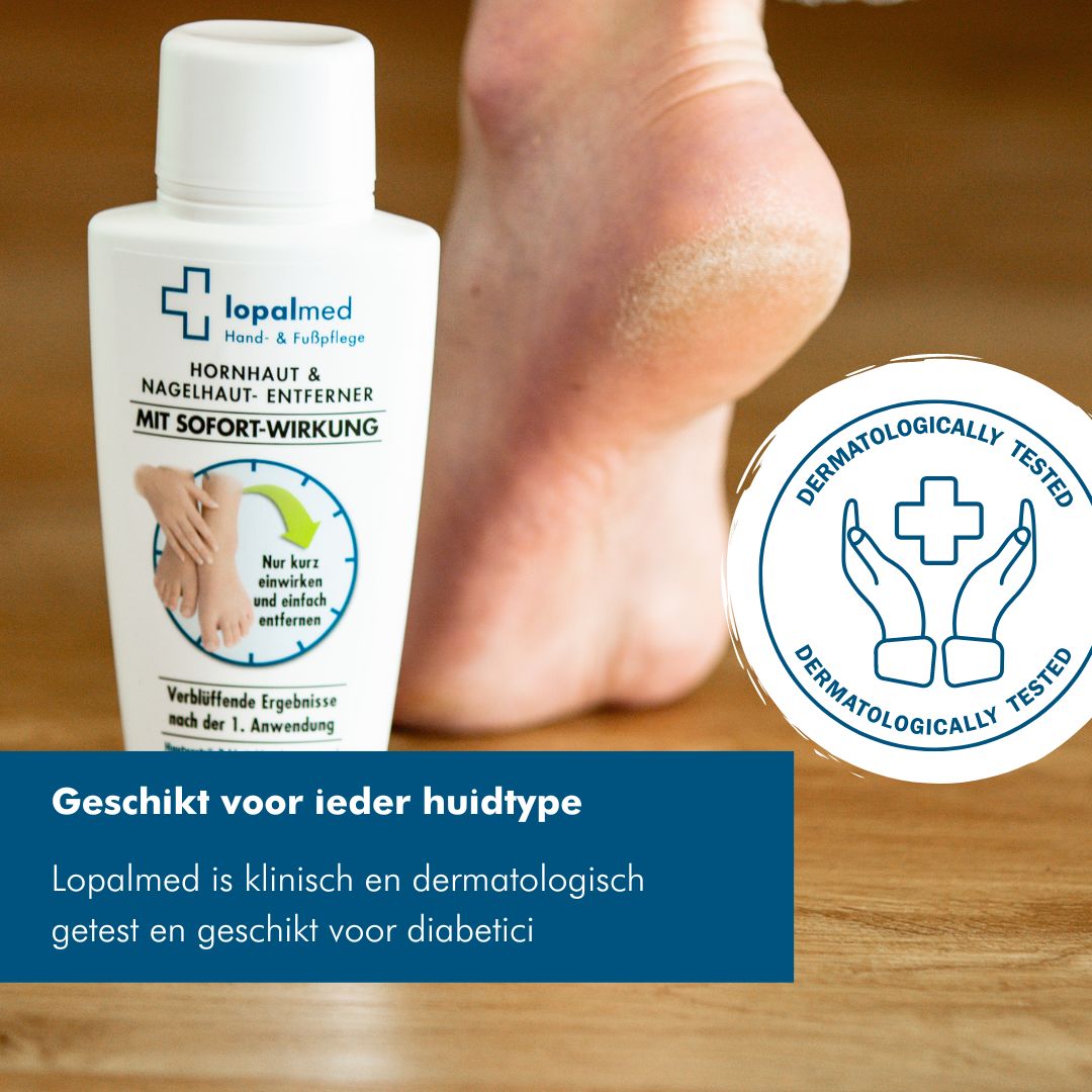 Met de Lopalmed Callus & Cuticle Removal Lotion heb je de mogelijkheid om eelt en nagelriemen voorzichtig te verwijderen zonder puimsteen, rasp, eeltschaaf of nagelriemschaar.
