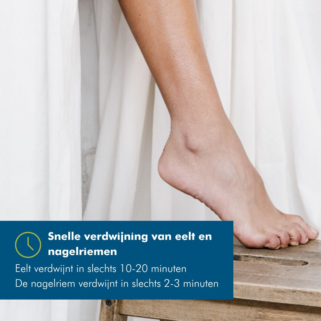 Het voordeel: de gezonde huid wordt niet belast of zelfs beschadigd (vooral geschikt voor diabetici) en zo wordt de onnatuurlijke vorming van eelt tegengegaan.
