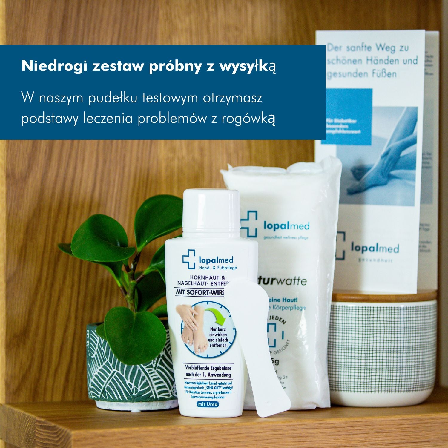 Wata jest potrzebna, aby na dotknięte obszary można było nałożyć preparat do odcisków i skórek Lopalmed.